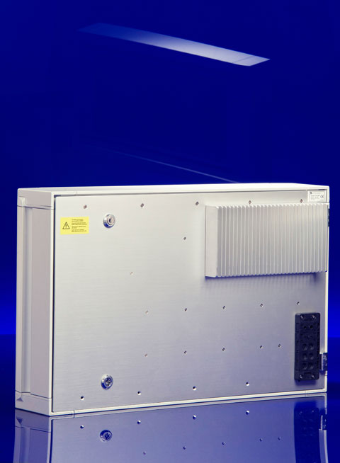- geschlossene Bauform im Alugehäuse, Schutzart IP65, integrierte seitliche Griffleisten