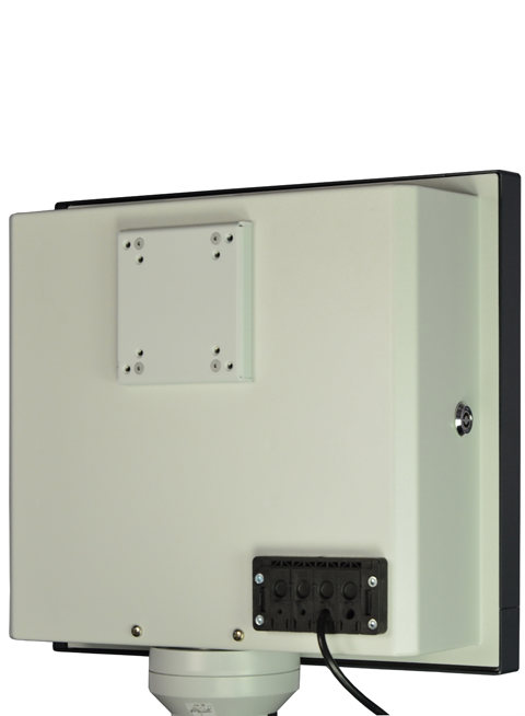 Display und PC werden mit 24V DC versorgt. Über eine optionale Netzteilkassette ist auch ein Betrieb an Netzspannung möglich. Die Kassette wird über einen Kaltgerätestecker mit Schalter und Netzfilter an 115V / 230V angeschlossen.